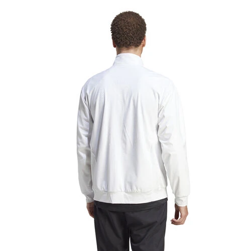 A top fit for Grand Slam royalty. London doesn’t just host the world’s oldest tennis tournament, it’s also the home of Savile Row style. Part of a collection focused on the fine details, this adidas jacket has a heraldry-inspired graphic embroidered onto its back. Velvety-soft to the touch, it includes a bit of stretch so you can wear it during casual hits and practise sessions. Side pockets add extra storage room for unused balls.