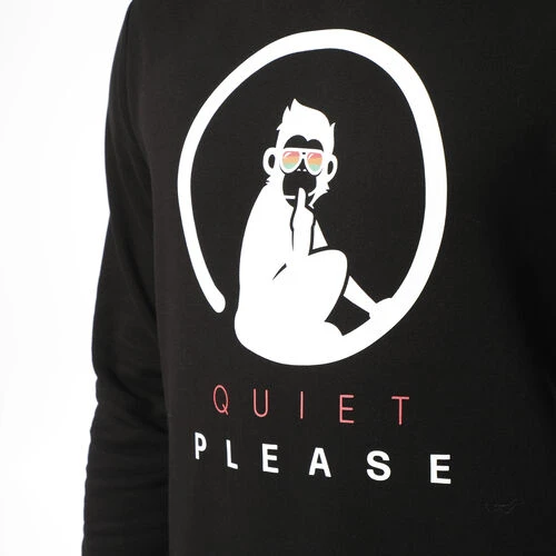 - Quiet Please lettering on chest
