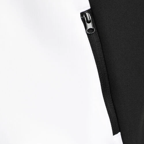 - Wide waistband, Ribbed waistband, Elastic cuff, Elastic waist, Printed logo, High zip (on high collar), Chin protection at the collar, Raglan sleeves, Crewneck, Side pockets with zip, Stand up collar